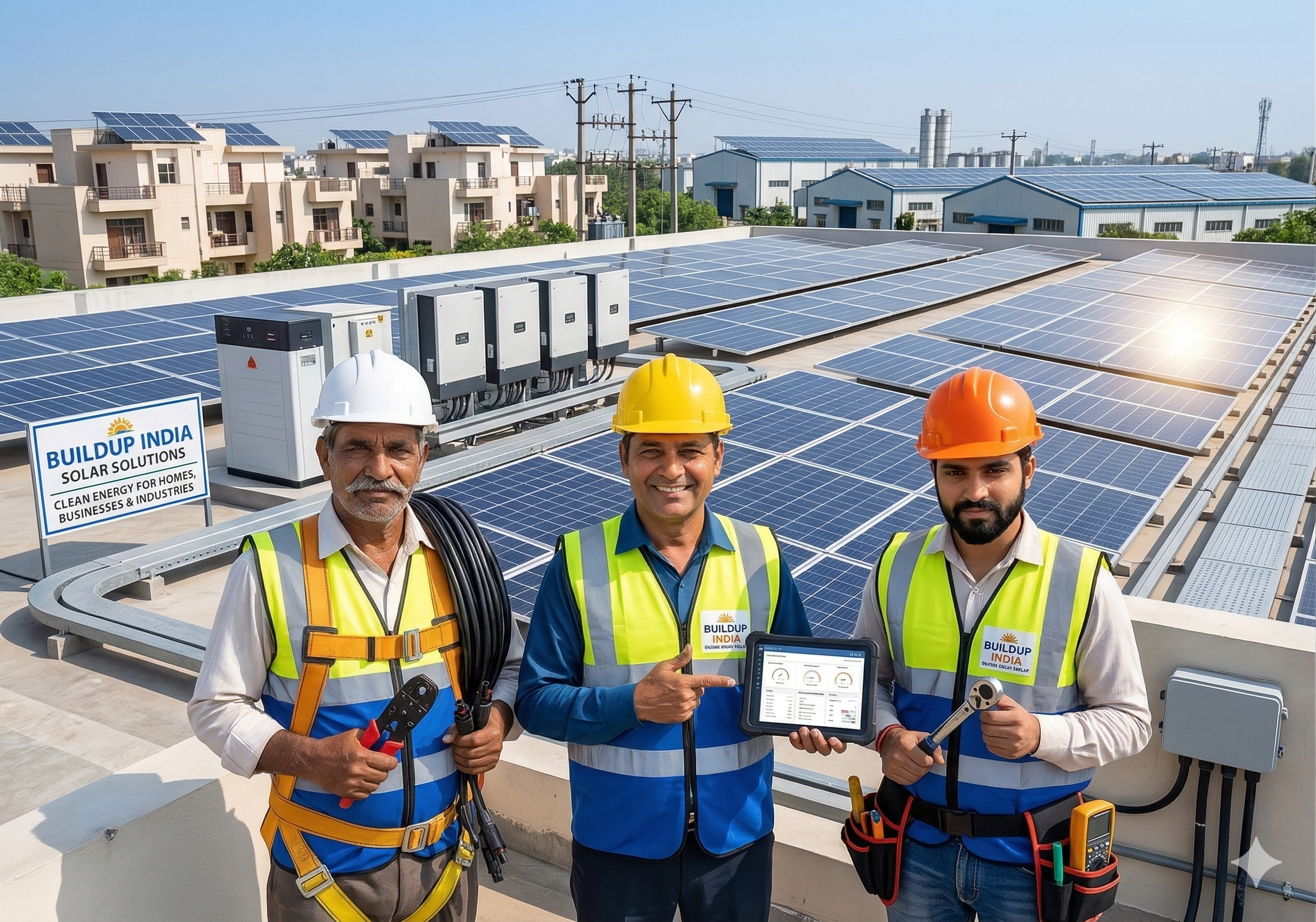BuildUpIndia provides complete solutions in elevator installation and maintenance, solar panel system design and installation, and professional consultancy services for residential, commercial, and industrial projects.